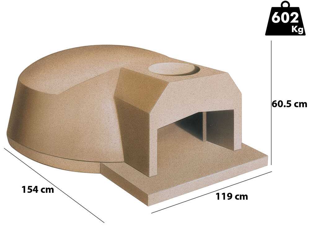 Außerdem ist das Backen mit Holz gesund, arm an Fetten und ideal geeignet, um die Lebensmittelgeschmäcke aufzubewahren. Die Eigenschaften und die Abmessungen dieses Produktes sind: