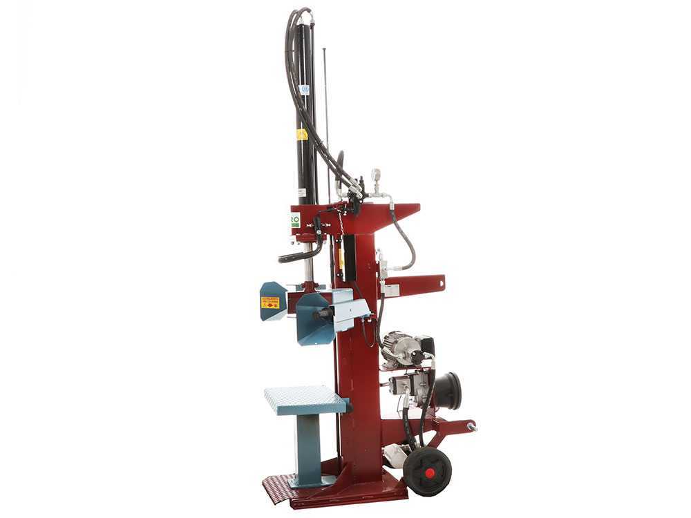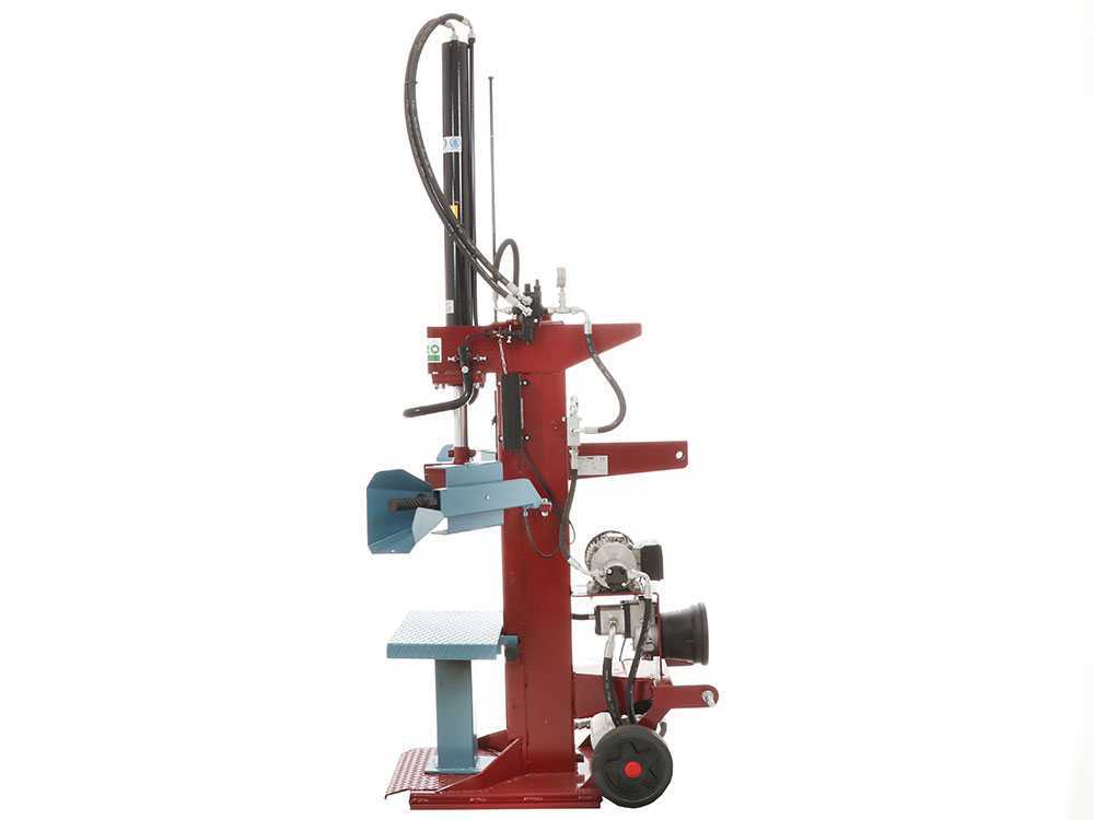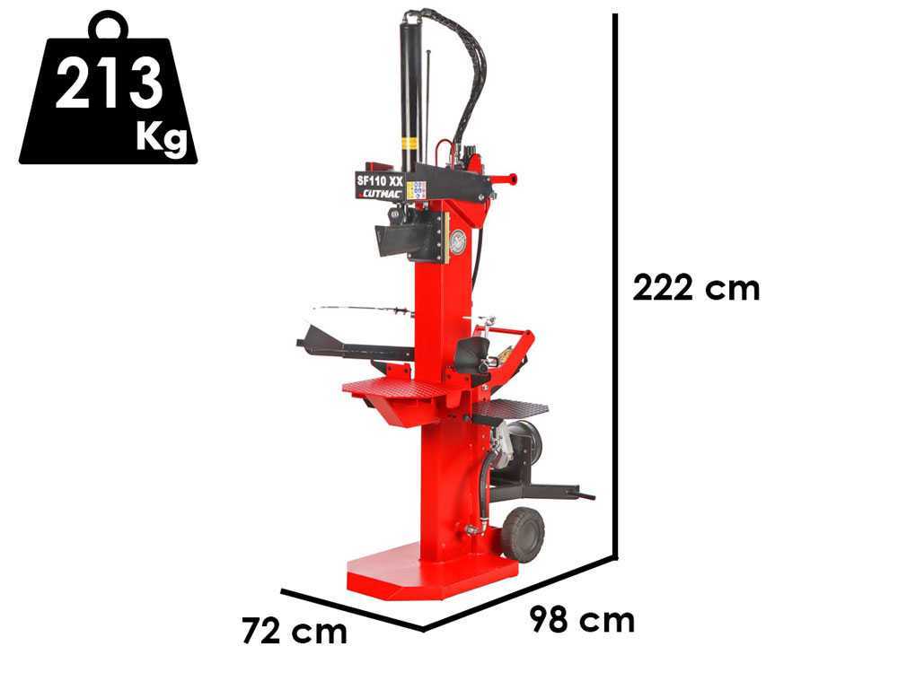 Dank eines Schubs von 15 Tonnen kann er Stämme von verschiedenen Abmessungen (max. 126 cm hoch) aus knorrigem Holz zu spalten. Er erlaubt mit zwei verschiedene Geschwindigkeiten zu arbeiten dank des Kolbens mit variabler Geschwindigkeit. Daher ist es notwendig, mit mehr oder weniger Druck auf die Steuergriffe zu drücken. Außerdem verfügt er über ein einstellbares automatisches Kontrollsystem des Endanschlags. Dank der zwei Räder an der Basis der Maschine kann er überall transportiert werden. Der Holzspalter ist mit einem Einphasenmotor ausgestattet der eine Leistung von 2,2 Kw emittiert.