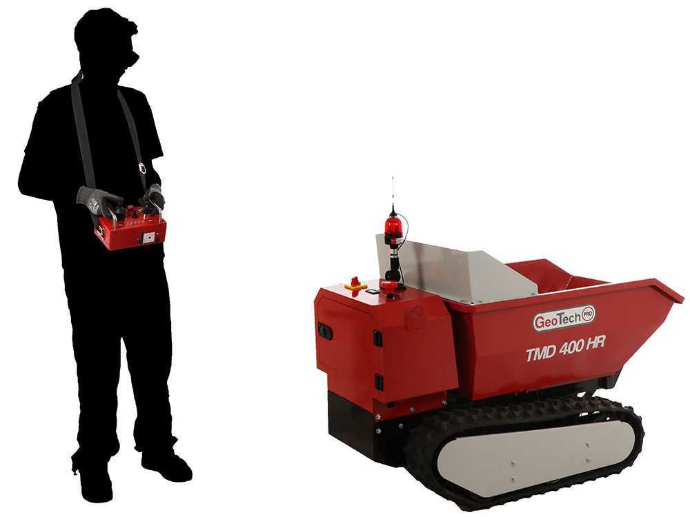 Akku Mini Raupendumper GeoTech-Pro TMD 400 HR mit Fernbedienung – mit hydraulischer Kippfunktion – 400 kg