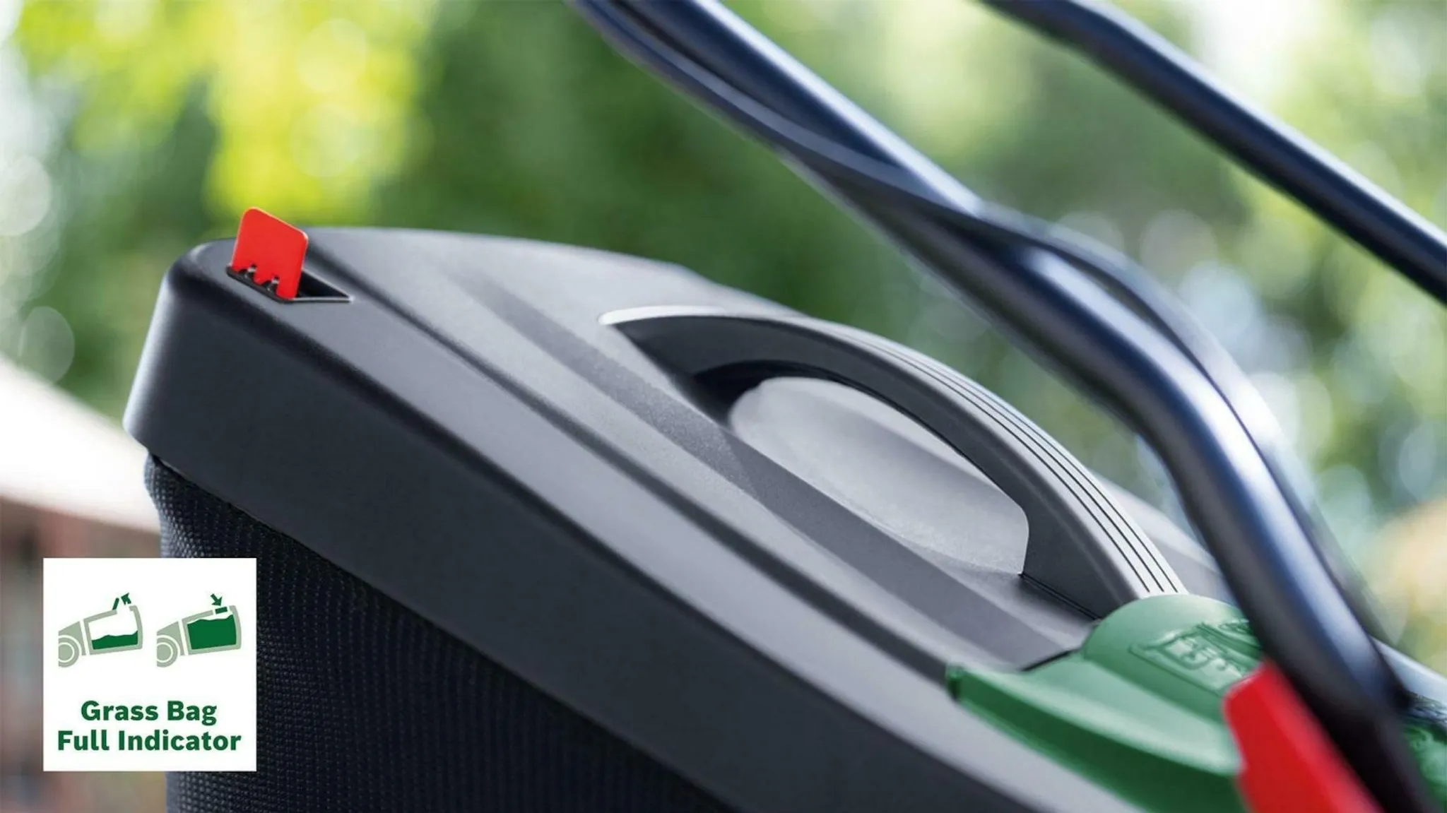 Saubere Rasenflächen dank hochwertigem Textilgrasfangskorb mit Anzeige bei vollständiger Füllung