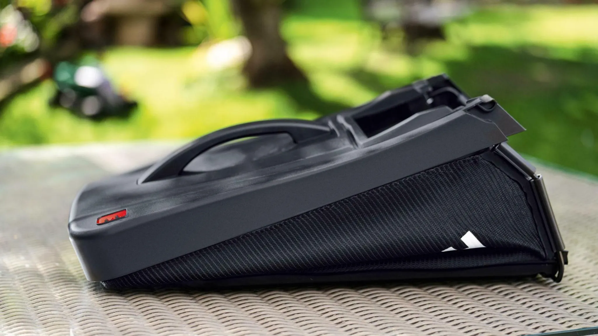 • Zusammenklappbarer Textil-Grasfangkorb für kompakte Aufbewahrung