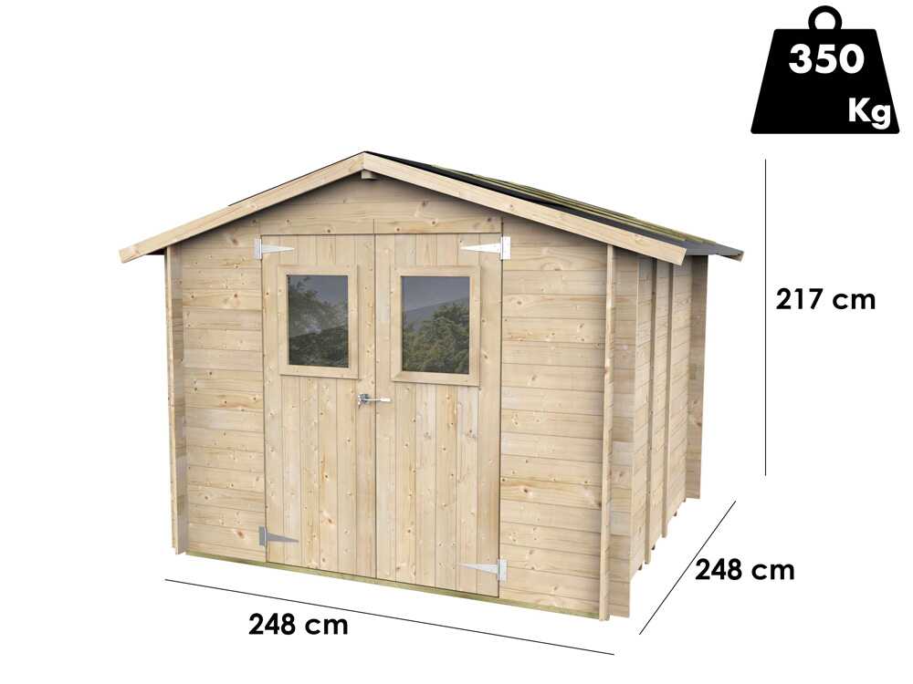 Alce Hobby 248×248 – Gartenhaus aus Holz – Mit Fenstern und Doppelflügeltür – 248x248x217 cm