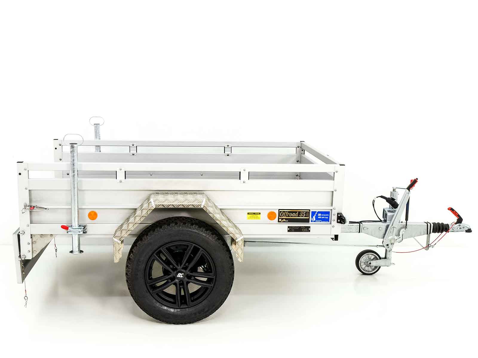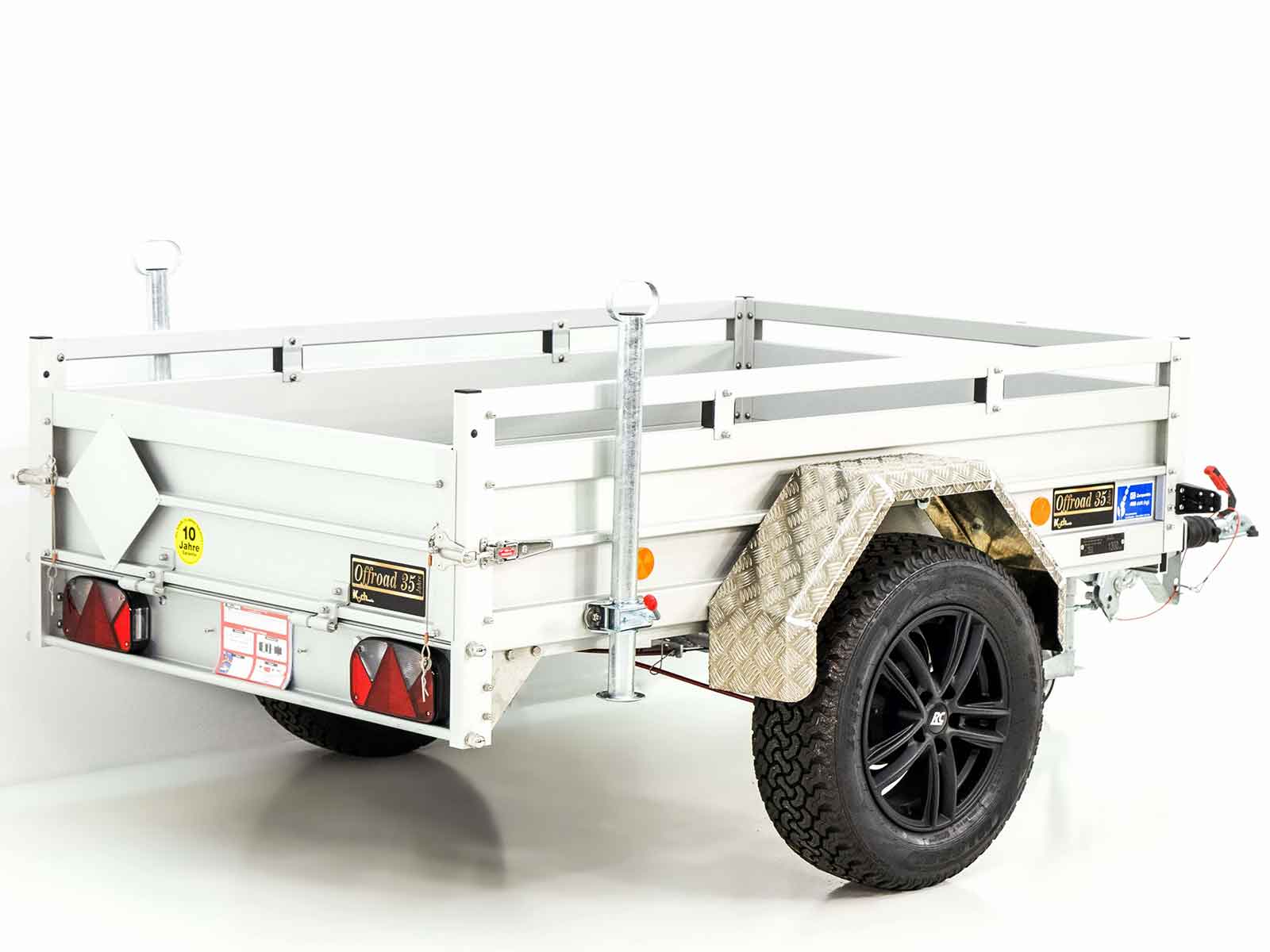 Der Anhänger „CROSSLINE“ bietet eine ausgezeichnete Kombination aus robustem Design und hoher Leistungsfähigkeit. Mit einer größeren Bereifung (215/65 R16) und Aluminium-Riffelblech-Kotflügeln bietet dieser Anhänger zusätzliche Stabilität und eine höhere Nutzlast. Ideal für schwerere Lasten und anspruchsvollere Transportaufgaben.
