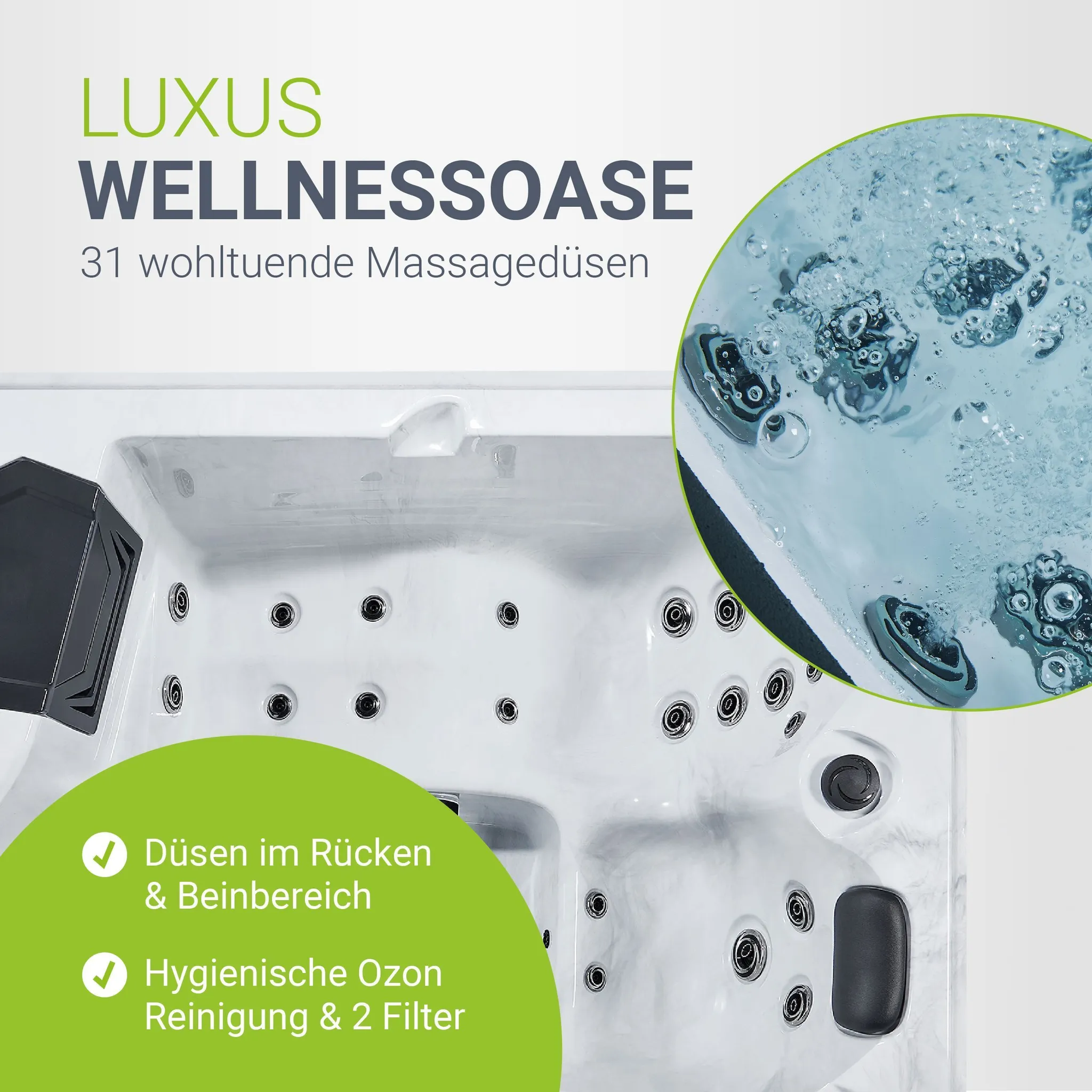 Artsauna Outdoor Whirlpool Oasis – Spa mit Massagedüsen, LED-Beleuchtung, 2 Filter, Abdeckung, Pumpe – Whirlpool winterfest & beheizbar