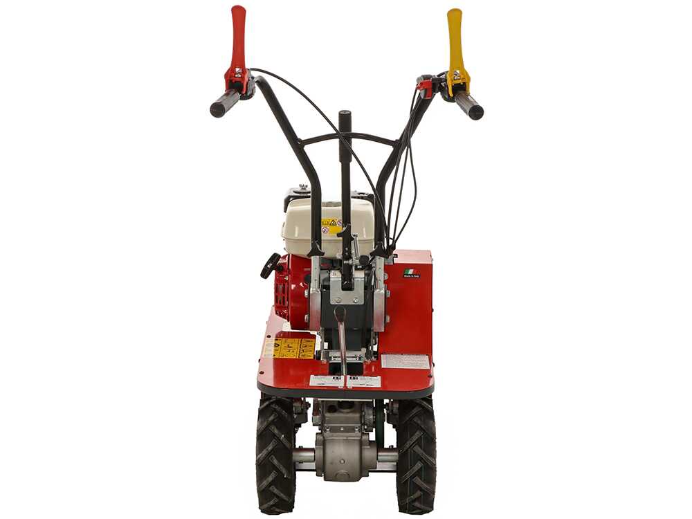 Die kompakte Bauweise und die Schnittbreite von 30 cm machen ihn besonders geeignet für kleinere Arbeitsbereiche, wobei ein hohes Maß an Präzision beibehalten wird. Das Schneidwerkzeug ist ein Messer, das in der Tiefe bis zu 35 mm einstellbar ist, mit 6 verschiedenen Positionen, die über ein Zahnstangensystem im zentralen Bereich des Lenkers bedient werden.