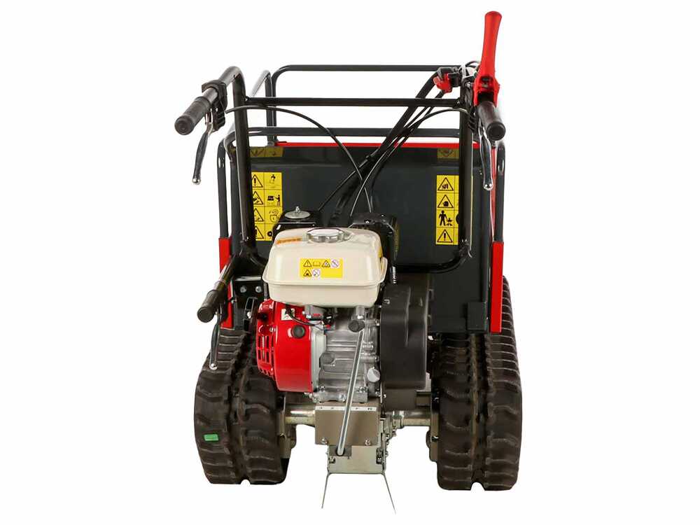Ausgestattet mit einem Honda GX160 Motor bietet diese Motorschubkarre hohe Leistung und kann problemlos Lasten bis zu 550 kg bewältigen. Das System mit Keilriemenantrieb und im Ölbad laufenden Zahnrädern gewährleistet eine hohe Verschleißfestigkeit und eine lange Lebensdauer.