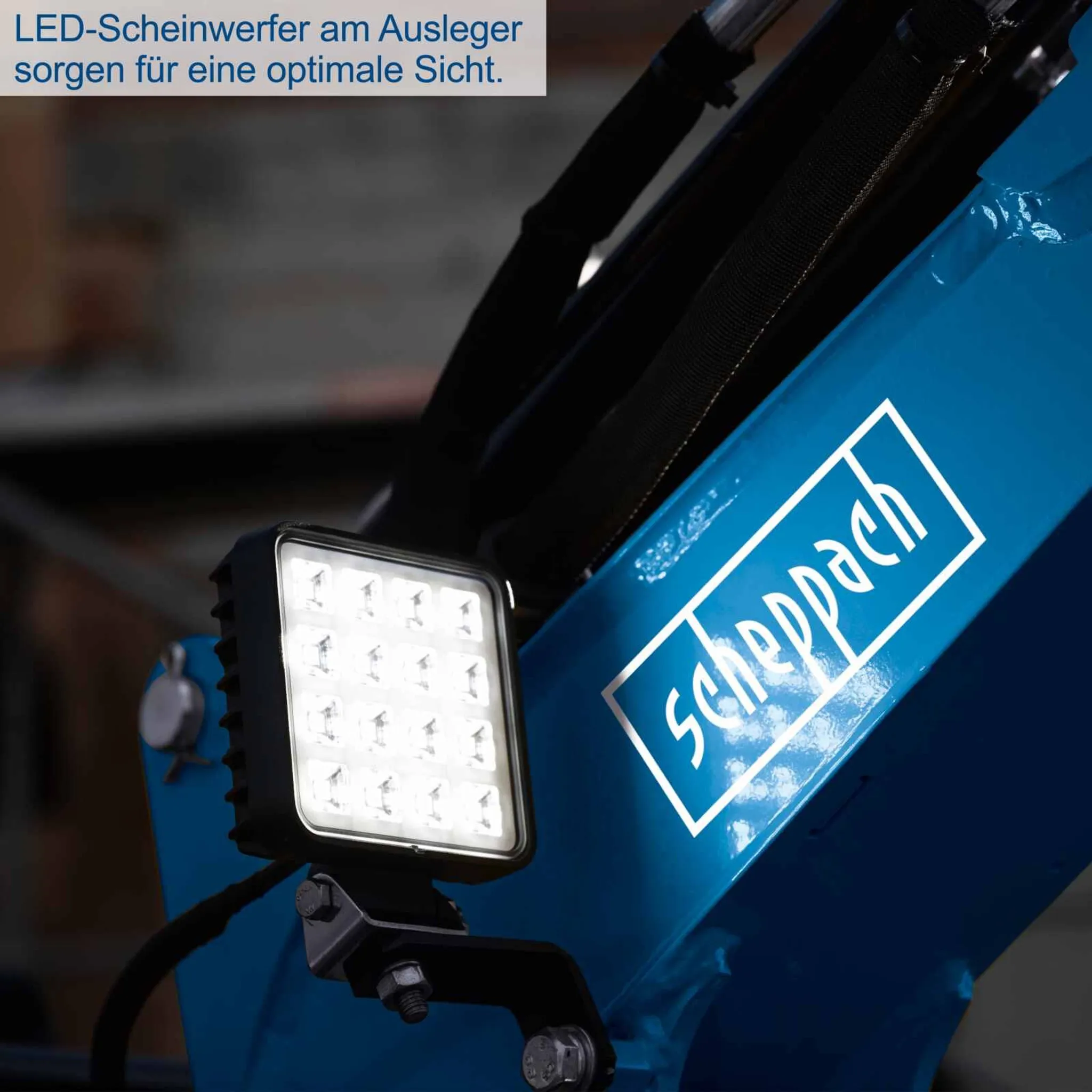 • LED-Scheinwerfer am Ausleger sorgen für eine optimale Sicht