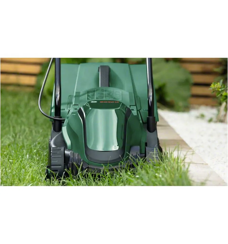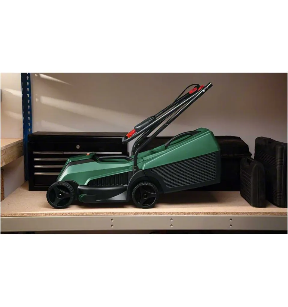 Leichtes Design für müheloses Manövrieren. Klappbarer Bügelgriff für kompakte Aufbewahrung. 3 Schnitthöhen von 20 bis 60 mm. Rasenkämme für optimale Ergebnisse an Kanten und Wänden.