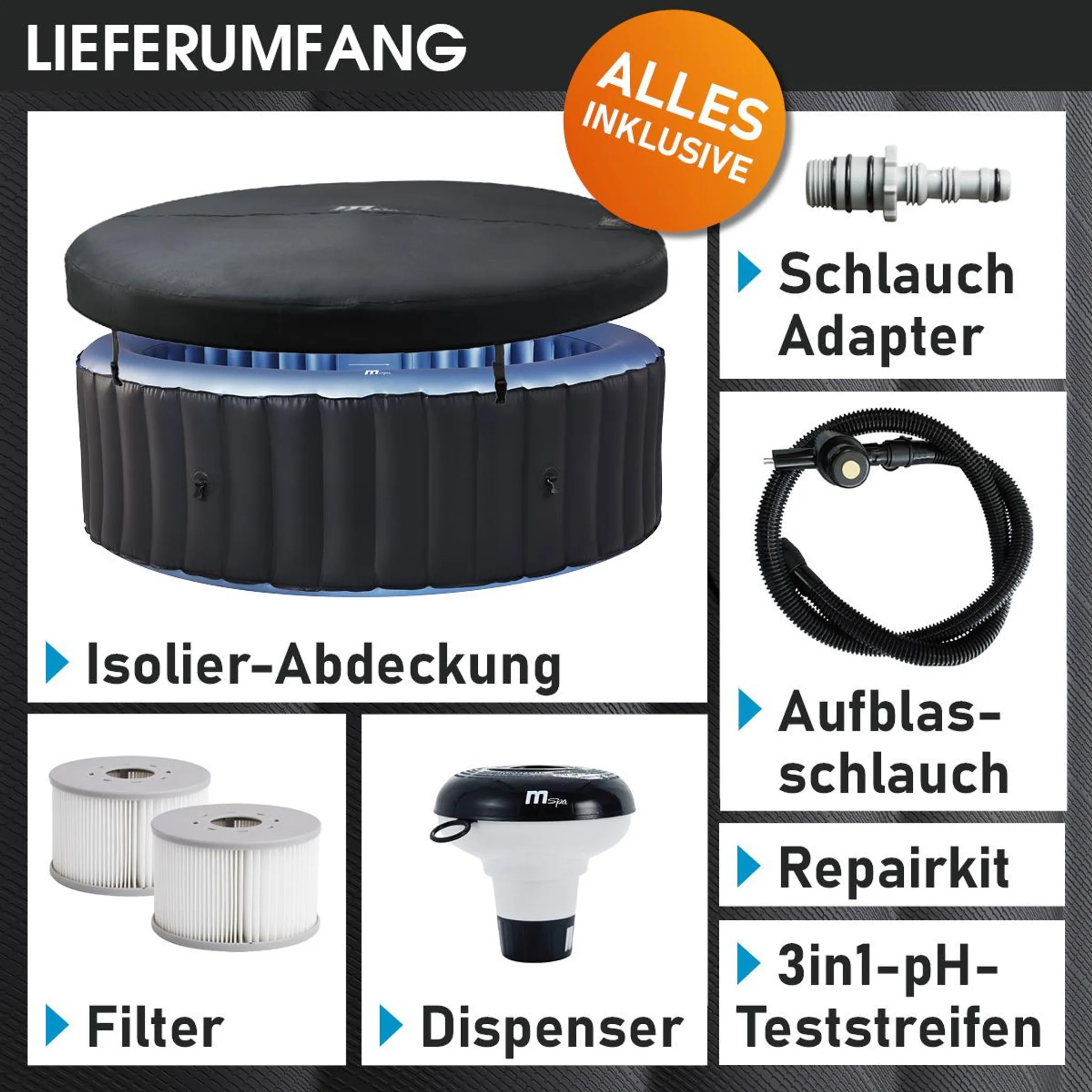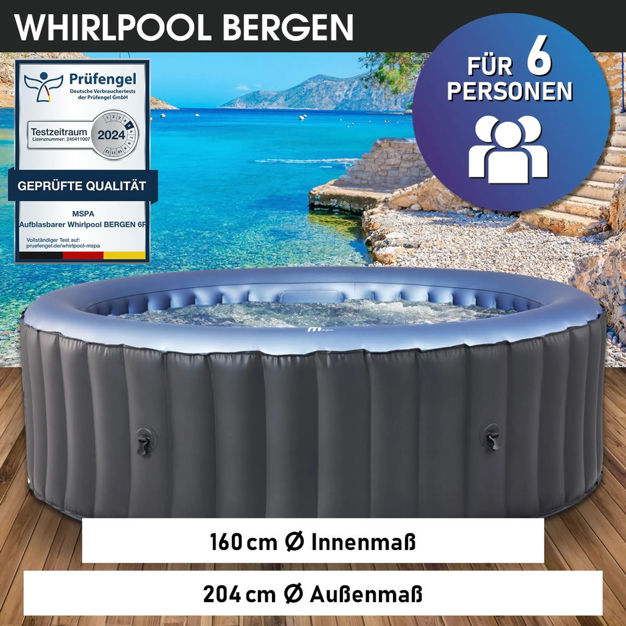 BRAST Whirlpool aufblasbar MSpa Bergen für 6 Personen | Ø204x70cm | In- Outdoor Pool | Ganzjähriger Einsatz | 138 Massagedüsen | Stromsparend inkl. Energiespar-Timer