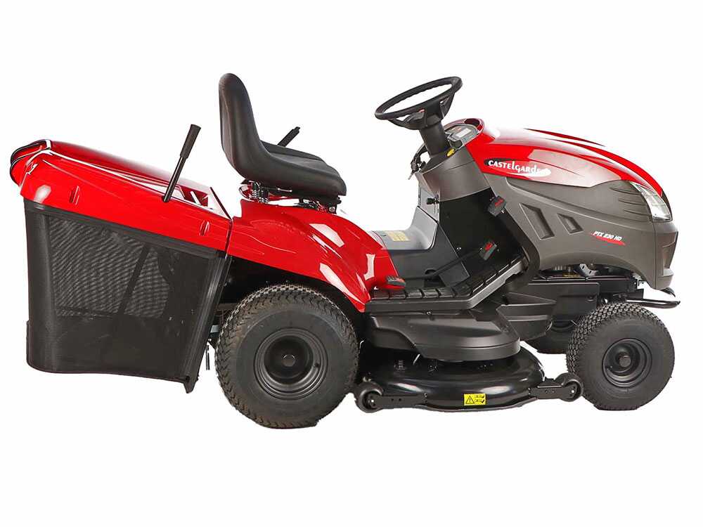 Rasentraktor CastelGarden PTX 230 HD mit Fangkorb. Ideal für das Mähen auf großen Flächen dank der 300 Liter Fangbox und des Mähwerks. Es ist mit 2 122 cm Messern und 4 rutschfesten Rädern ausgestattet.