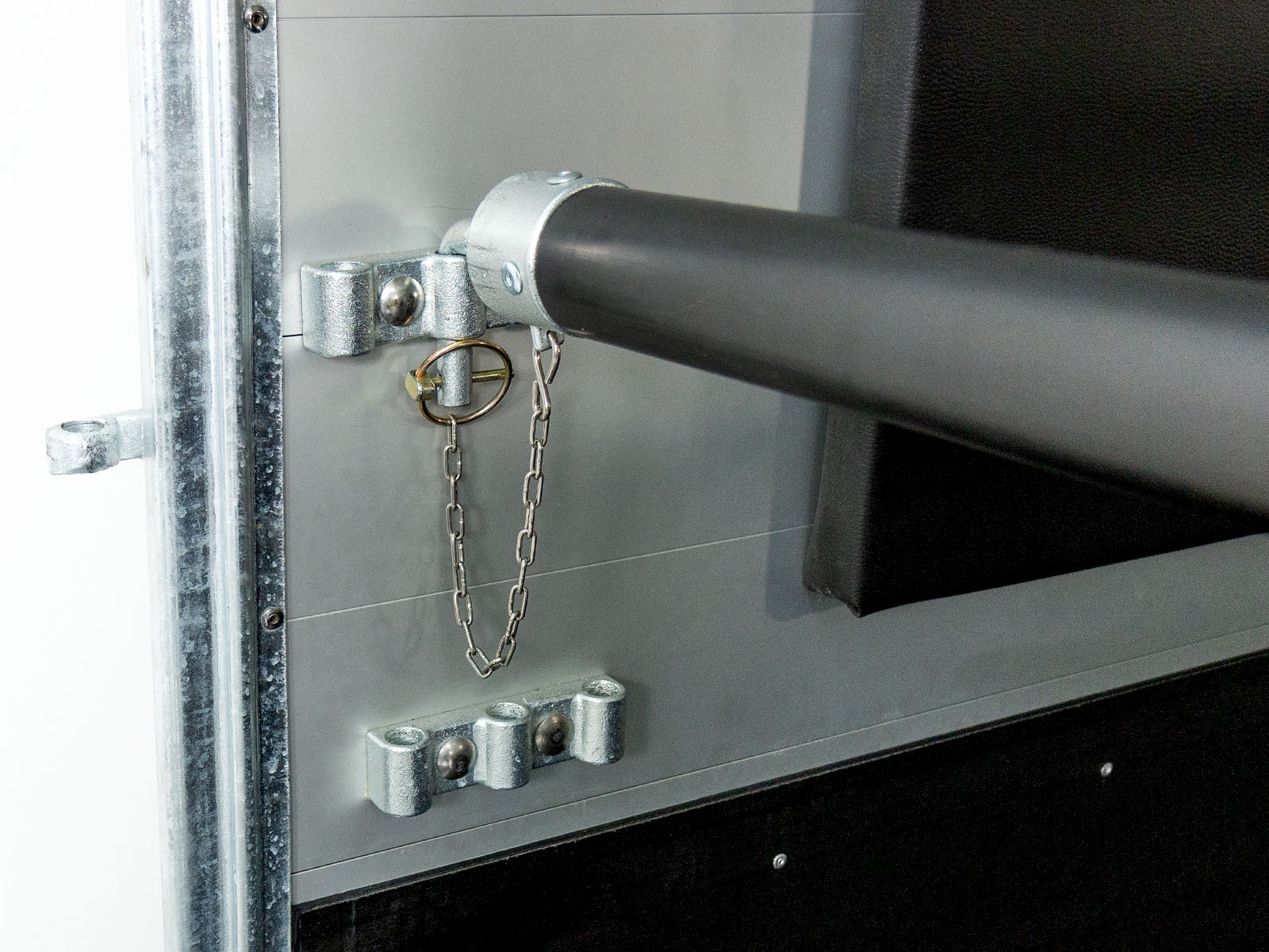 - Heckklappe aus Aluminium, dreh- und schwenkbar mit Gummibelag