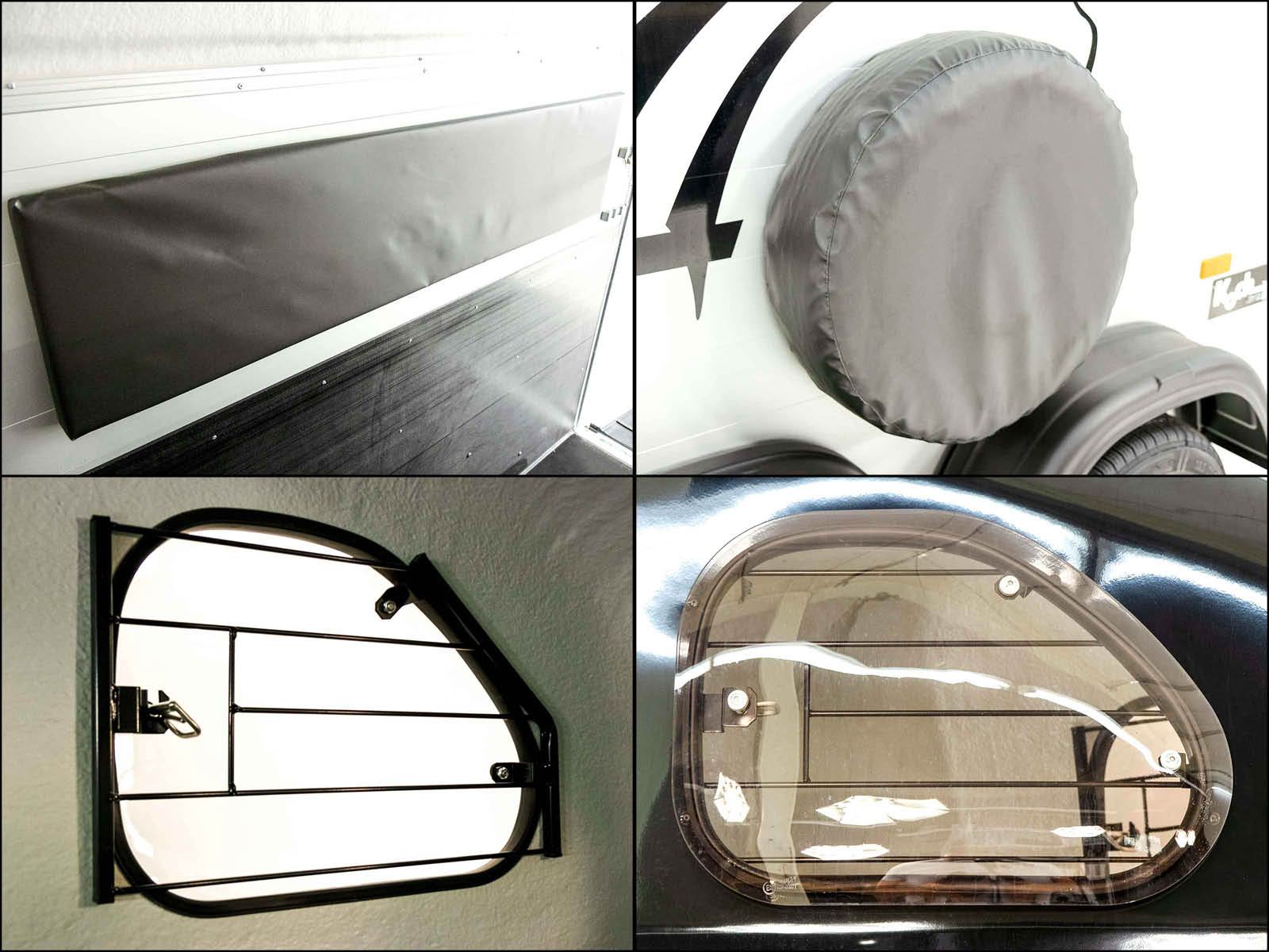 - Heckklappe aus Aluminium, dreh- und schwenkbar mit Gummibelag