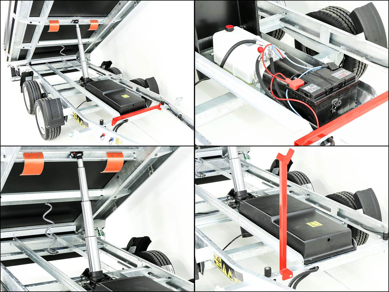 - Fahrwerk : Gummifederachse, V-Deichsel mit Zugkugelkupplung, Automatik-Schwerlaststützrad