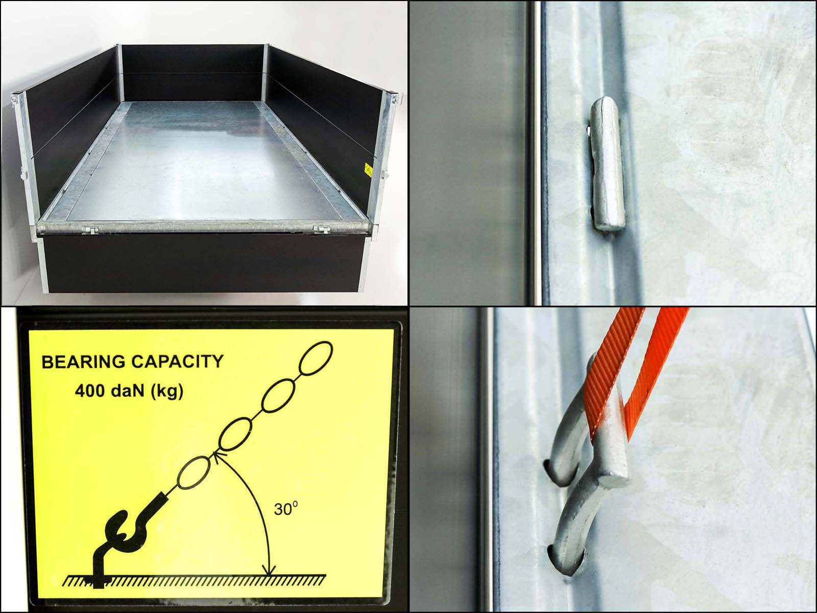 - Bordwände : Aluminium 350 mm, schwarz, klappbar und abnehmbar
