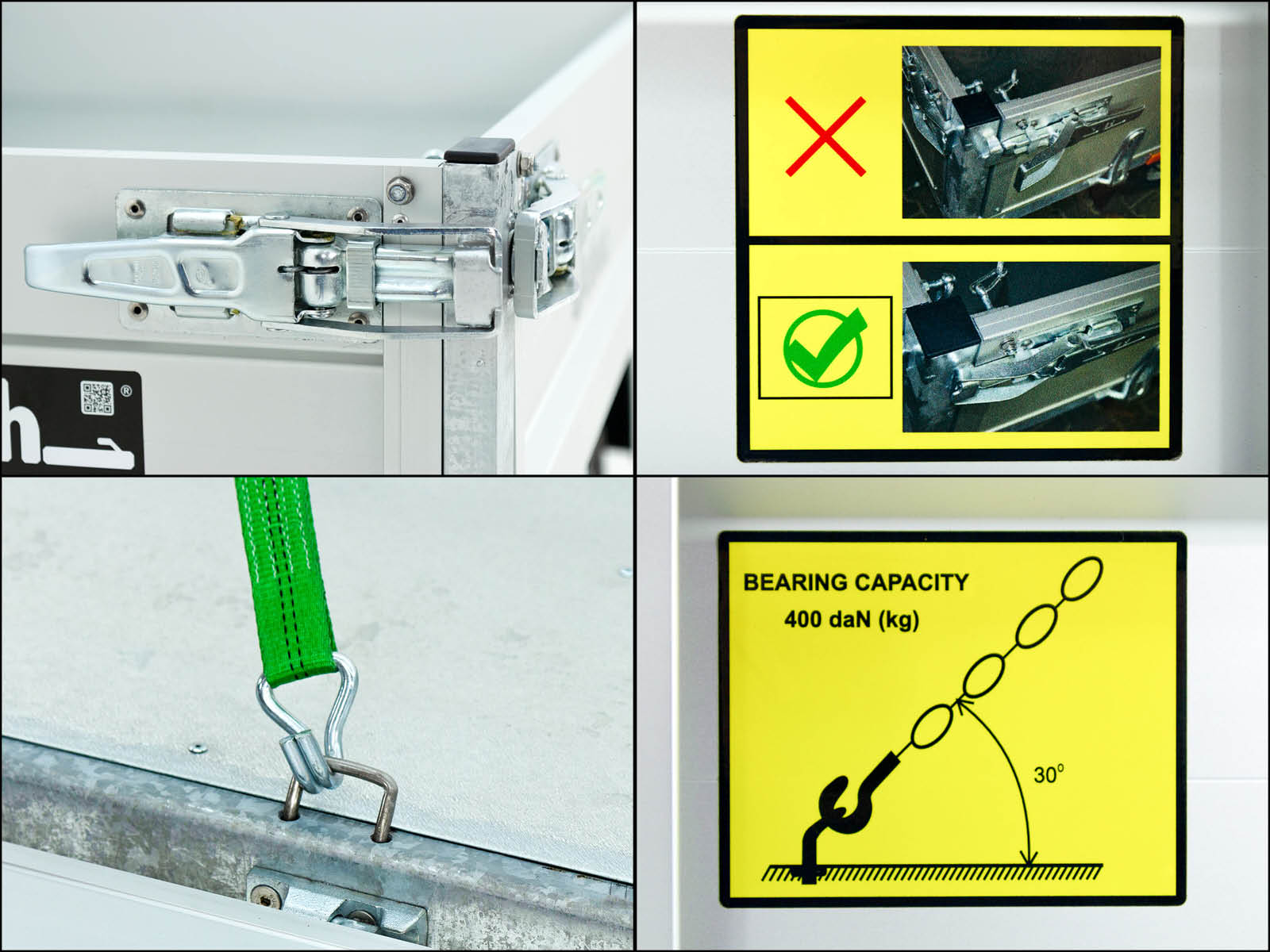 | Zusätzliche Ausstattung | Ladekontakte im Rahmenprofil (12V), Keile + Halter |