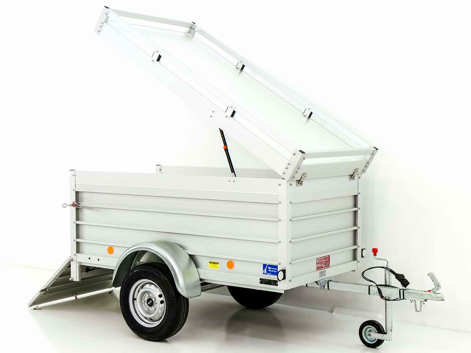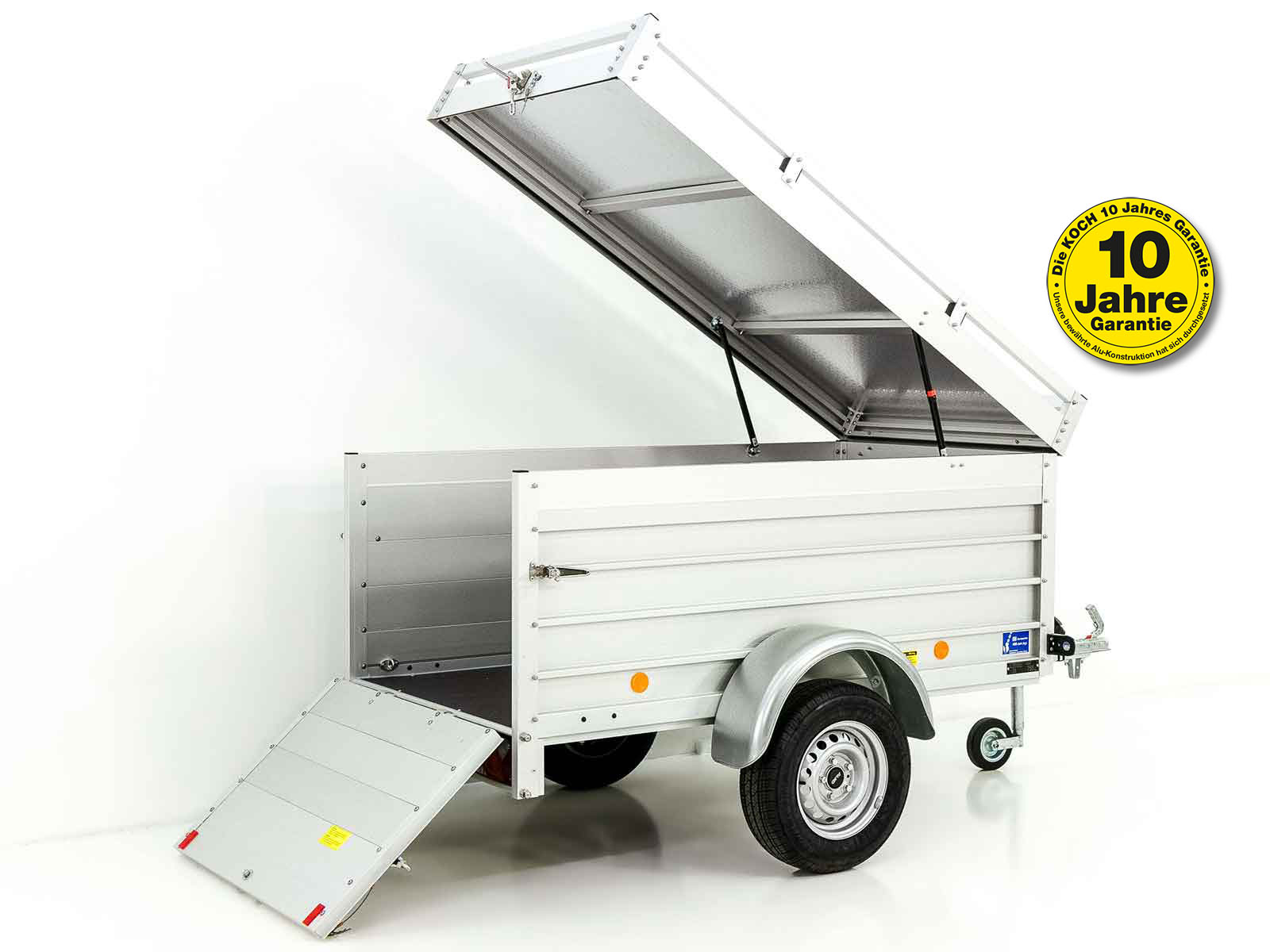Der Deckelanhänger Typ U4 mit einem Laderaum von 125 x 250 x 50 cm ist ein leichter Aluminium-Anhänger mit einem zulässigen Gesamtgewicht von 750 kg und einer Nutzlast von 570 kg. Der Anhänger ist perfekt für den Transport und bietet eine hohe Lebensdauer sowie 10 Jahre Garantie. -Anhängerwerke stellt diesen Anhänger in Deutschland her.
