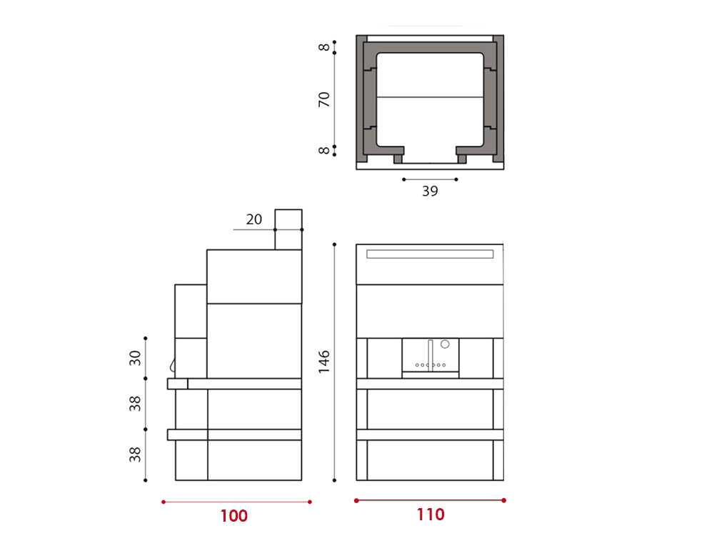 • Kompakte Abmessungen: Stellfläche von 110 x 100 x 146 cm, Brennkammer von 80 x 70 x 45 cm.