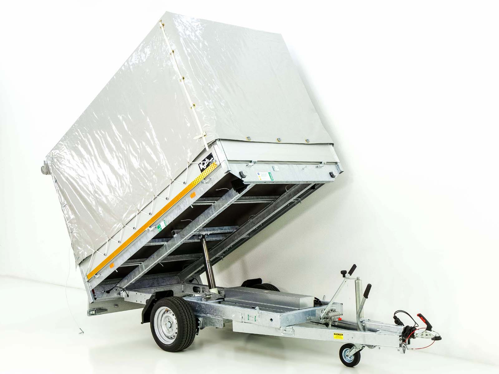 Dieser Eduard Heckkipper bietet ebenfalls eine E-Hydraulikpumpe und eine Not-Handpumpe sowie eine Hochplane von 160 cm. Mit einer maximalen Nutzlast von 1.454 kg und einem Gesamtgewicht von 1.800 kg ist er für mittlere bis schwere Lasten bestens geeignet.