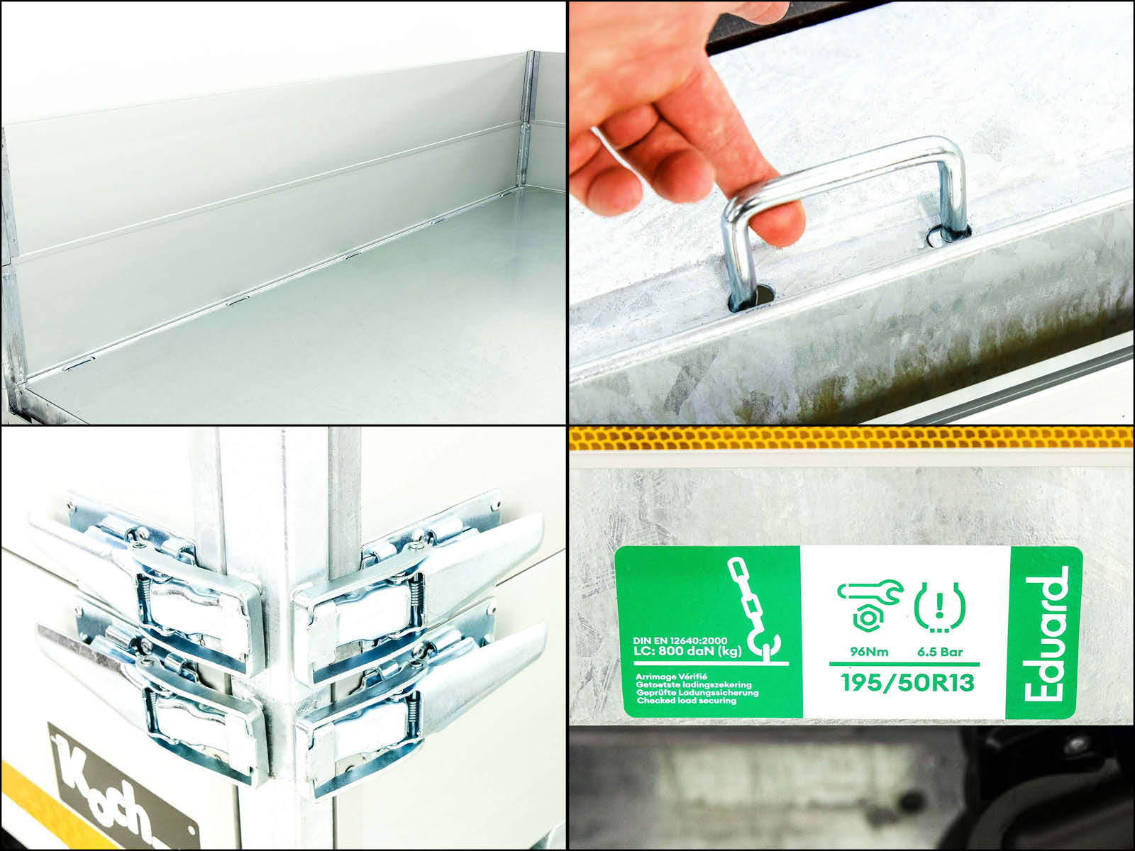 Dieser Eduard Heckkipper bietet eine praktische Kombination aus E-Hydraulik- und Handpumpe, ideal für mittelgroße Transportaufgaben. Mit einer Nutzlast von 1.388 kg ist er vielseitig einsetzbar und besonders robust.