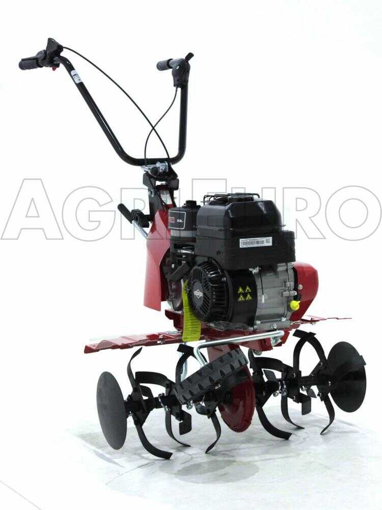 Das ist eine Gartenfräse für den Hausgebrauch mit B&S Verbrennungsmotor, hängenden Ventilen, mittleren Abmessungen, für mittelschwere Landarbeiten und den Abbau von mittleren Flächen außergewöhnlich wirksam.