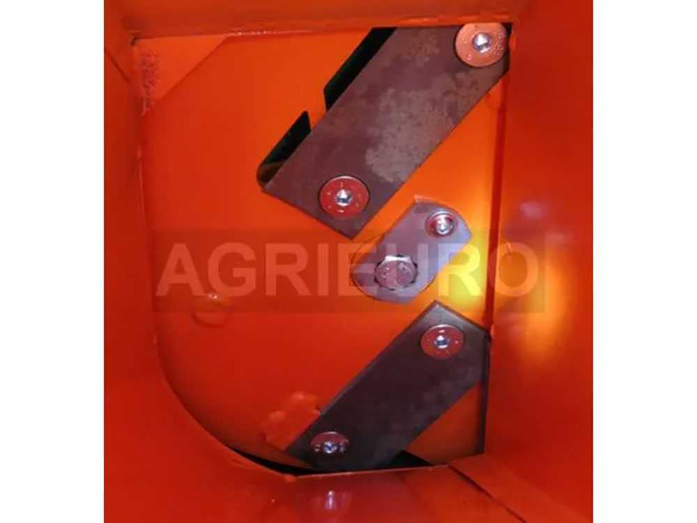 – Nr. 1 Schneidmesser von großer Größe und Dicke, die auf einer rotierenden Stahlscheibe am Ende des Trichters montiert sind.
