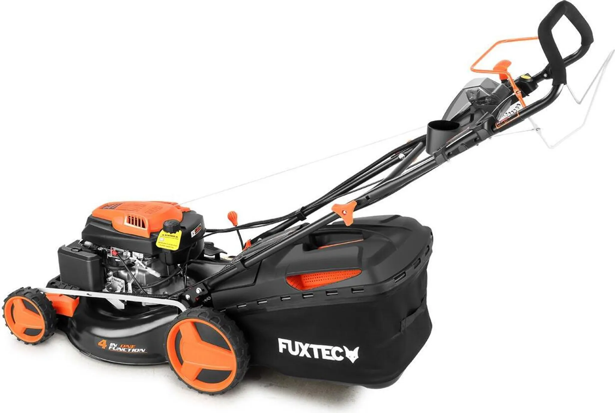 - ULTIMATIVE PERFORMANCE: Der Spezialmäher mit flexibel einstellbarem Hinterradantrieb bietet Zuverlässigkeit und Power – müheloses Starten per Knopfdruck dank Easy-Start mit ZIPGO / 4in1 RASENGERÄT: Mähen, Fangen, Mulchen und Seitenauswurf mit einer 51 cm Schnittbreite ideal für Flächen über 1.000 m². Der 60-Liter-Grasfangkorb ist bequem abnehmbar und leicht zu entleeren / OPTIMALES MÄHERGEBNIS: Der FUXTEC Gartenrasenmäher verfügt über eine zentrale Schnitthöhenverstellung von 25 bis 75 mm, um den Rasen nach Ihren individuellen Vorlieben zu pflegen / LEISTUNGSSTARKER PROFI-RASENMÄHER: 6 PS Benzin Rasenmäher von FUXTEC mit starkem 4-Takt 196 ccm Motor und Antrieb für leichteres Arbeiten und hochwertig geschliffenem Mulchmesser aus Spezialstahl / HOCHLEISTUNGSRASENMÄHER: Gartenmäher mit robustem Design, Easy-Clean und Auto-Choke-System, beidseitige Füllstandskontrolle, integrierter Getränkehalter für müheloses Mähen großer Flächen