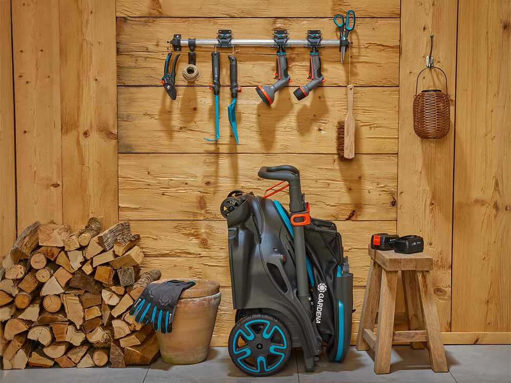 - Schnittbreite von 46 cm und Einstellung in 5 Stufen von 25 bis 65 mm.