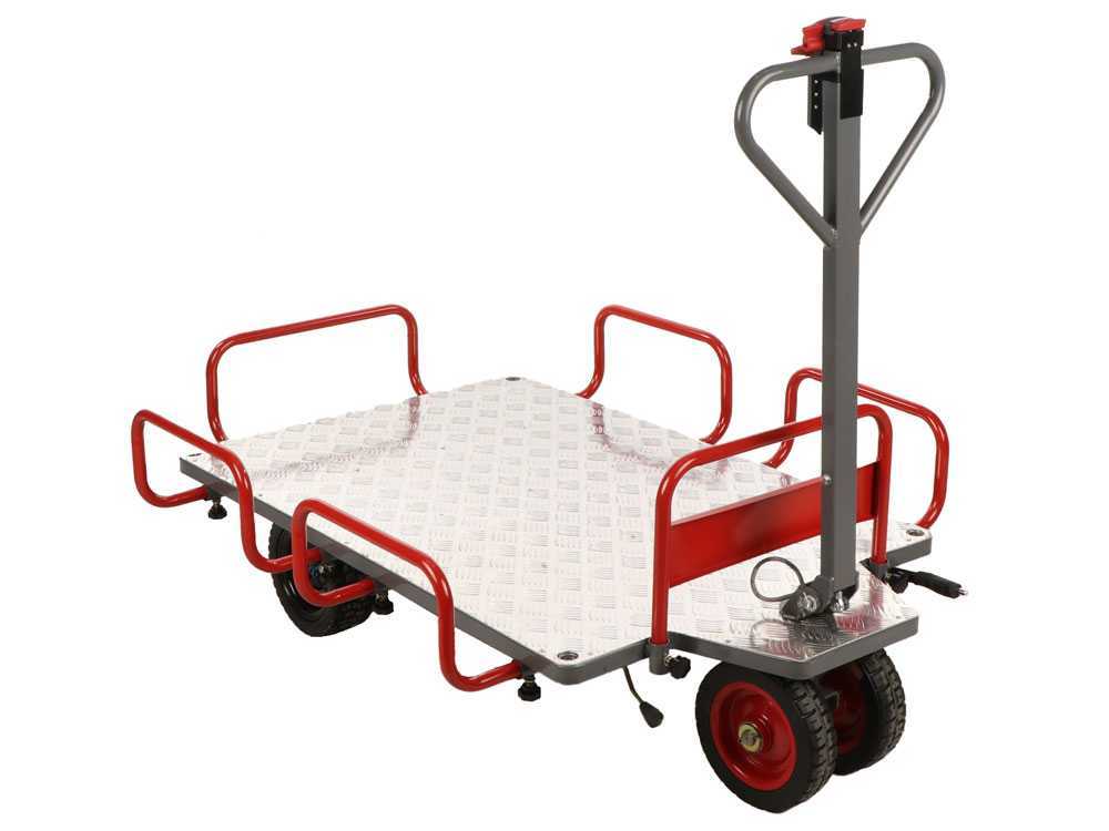 Sein robustes und stabiles Design verfügt über abnehmbare Seitenwände, die das Be- und Entladen von sperrigen oder längeren Materialien erleichtern. Die niedrige Ladefläche sorgt für eine komfortable Handhabung der Materialien, ohne den Benutzer zu belasten. Die Steuerung erfolgt über einen komfortablen Lenker mit allen Bedienelementen, wodurch die Nutzung einfach und intuitiv bleibt – auch für weniger erfahrene Anwender.