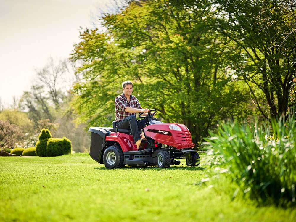 Dieser Aufsitzmäher ist ideal für mittelgroße und große Flächen dank des robusten 102 cm breiten Zweiklingen-Mähwerks.