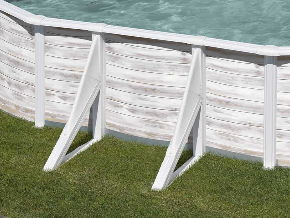Das Finlandia Oval-Pool-Kit enthält alles notwendige Zubehör für ein komplettes Erlebnis: einen Sandfilter, um das Wasser sauber zu halten, einen Skimmer zum Auffangen von Ablagerungen und eine Leiter für einen einfachen Zugang. Diese und andere Elemente garantieren eine praktische und sichere Nutzung des Pools.