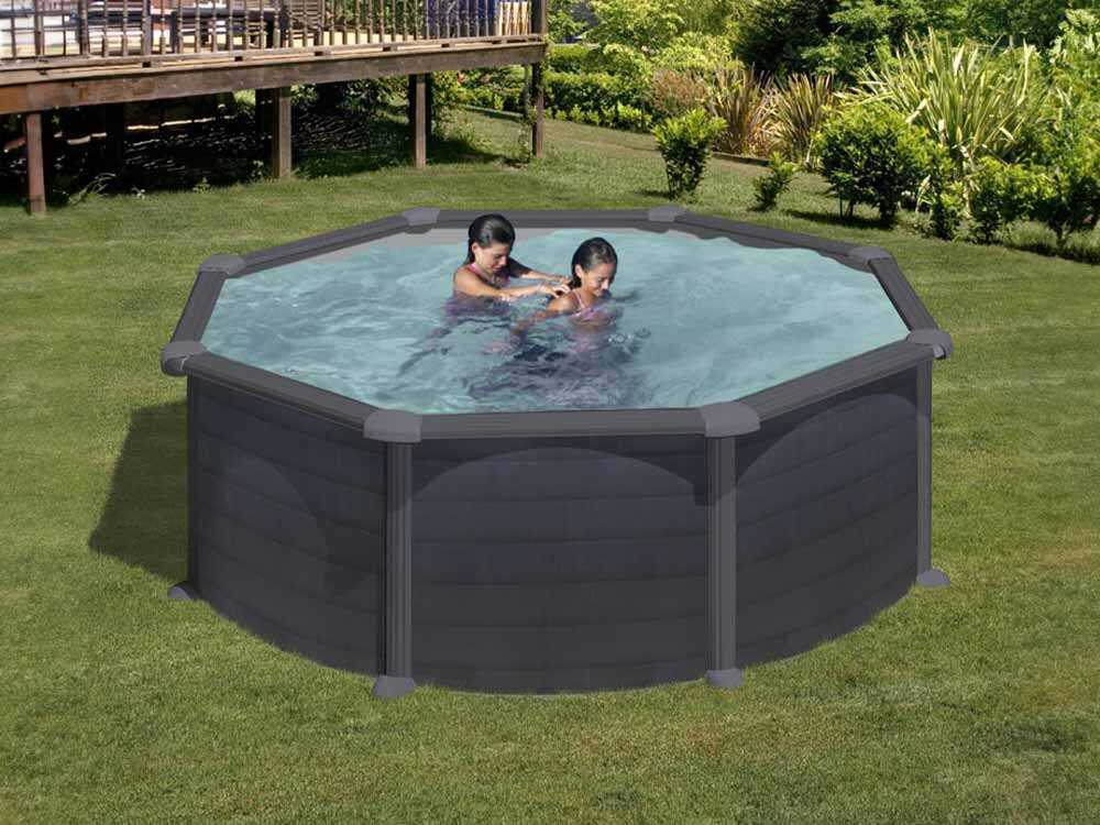 Der Gre Granada Rundbecken Ø350 x 132 cm ist die ideale Wahl für alle, die sich einen entspannenden und unterhaltsamen Bereich im Garten wünschen. Mit seinem eleganten Design aus graphitfarbenem Stahl fügt sich dieser Pool perfekt in jeden Außenbereich ein und verleiht ihm einen Hauch von Eleganz.