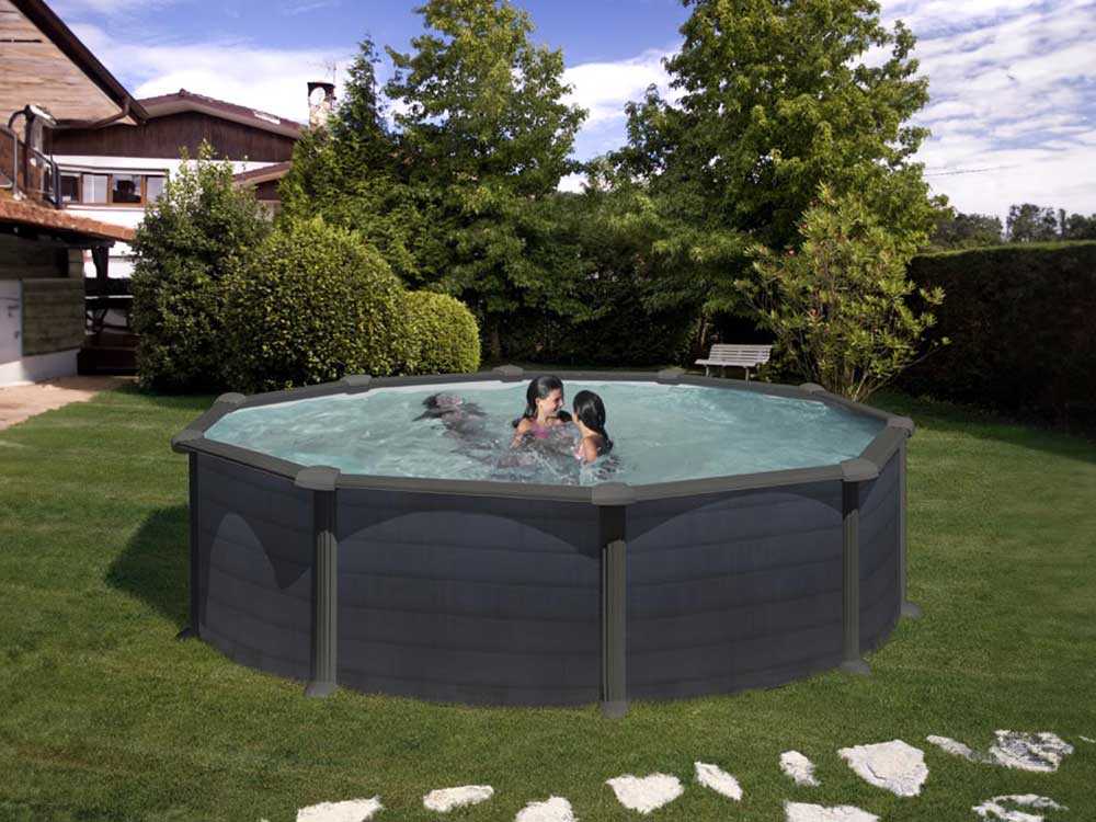 Der Pool Gre Granada Rundbecken Ø460 x 132 cm ist die ideale Wahl für alle, die sich einen entspannenden und unterhaltsamen Bereich im Garten wünschen. Mit seinem eleganten Design aus graphitfarbenem Stahl fügt sich dieser Schwimmbecken perfekt in jeden Außenbereich ein und verleiht ihm einen Hauch von Eleganz.
