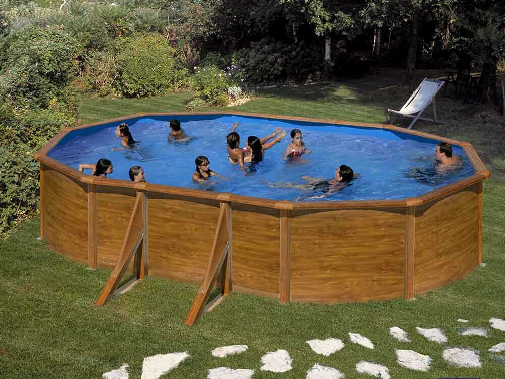 Der oberirdische ovale Pool Gre Piscina Pacific 500 x 300 x 120 cm ist die perfekte Wahl für alle, die sich einen großen Freizeitbereich in ihrem Garten wünschen. Mit seinem ovalen Design aus Stahl in Holzoptik verleiht er jedem Außenbereich Eleganz und Funktionalität.