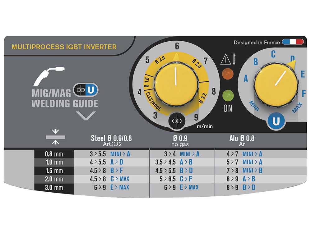 - Intuitive Einstellung: Spannung von 15 bis 22 V, Drahtgeschwindigkeit 3-9 m/min.