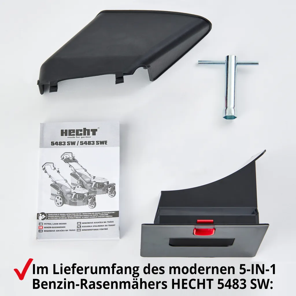 1 x HECHT 3-Rad Benzin Rasenmäher Modell 5483 SW / 1 x Mulchkit /