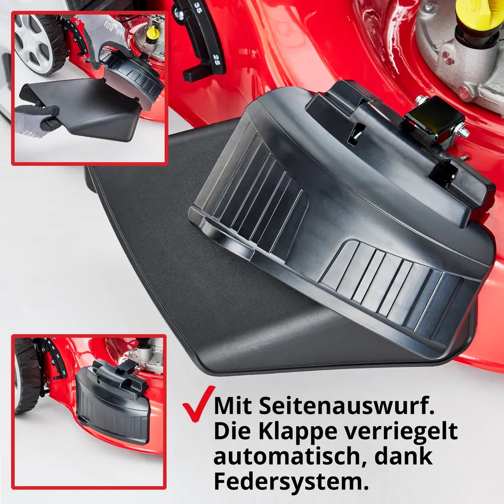 Funktionen: Mähen, Fangen, Mulchen, Seitenauswurf, Laubzerkleinerung