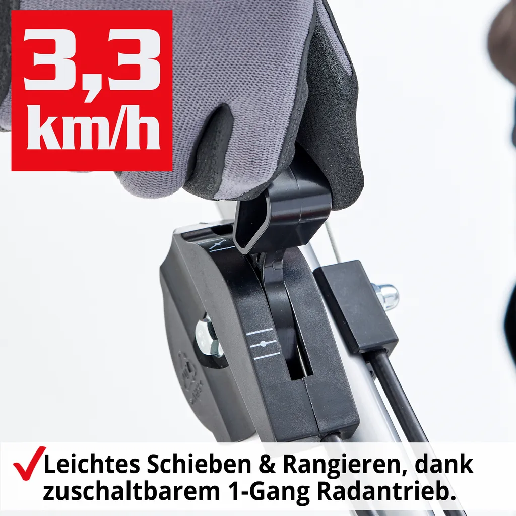 1-Gang Radantrieb mit ca. 3,3 km/h