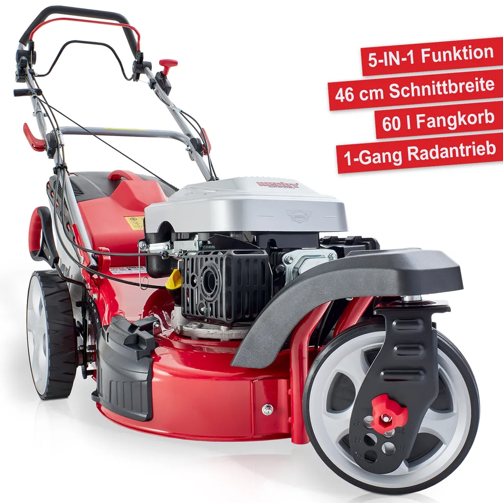 HECHT 5483 SW Rasenmäher Benzin | mit Antrieb | 46 cm Schnittbreite | 5in1 | 5 PS | 3-Rad | 60L Grasfangkorb
