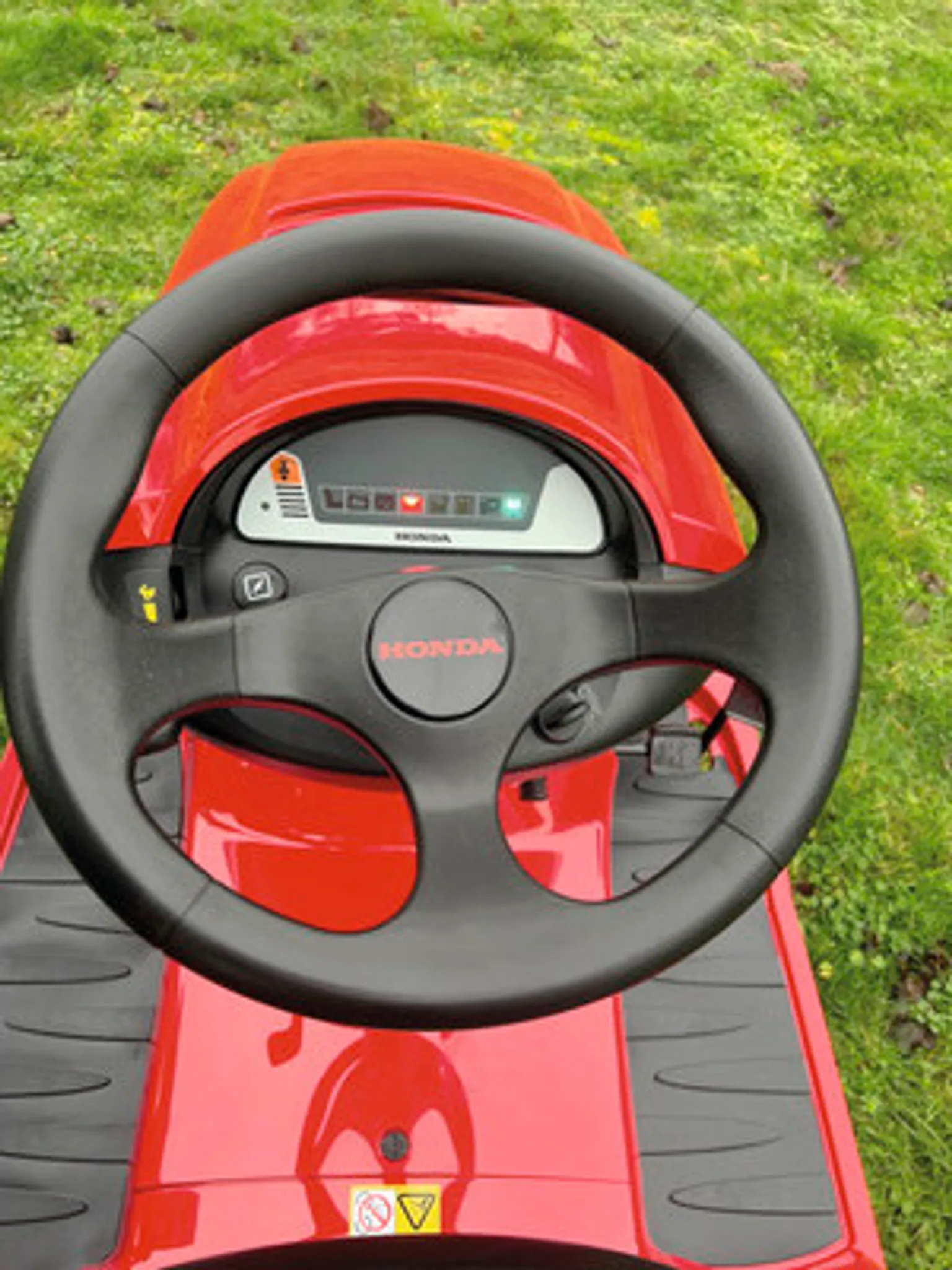 Große Rasenflächen hältst Du mit einem Rasentraktor top in Schuss. Du nimmst Platz, startest die Zündung und legst los. Mit dem Rasentraktor HF 2317 kürzt Du selbst hohes Gras im Nu. Neben der Zeitersparnis bietet er Dir noch weitere Vorteile. Produktmerkmale des Rasentraktors HF 2317 HM von HONDA Darum solltest Du zugreifen: Mit dem kompakten Rasentraktor HF 2317 HM kommst Du mühelos zu einem gepflegten Rasen. Seine Stärken spielt der Mäher auf großen Flächen über 2.000 m² aus. Erspare Dir den schweißtreibenden Fußmarsch und nimm auf dem ergonomischen Sitz Platz. Klappbare Armlehnen und ein leichtgängiges Soft-Grip-Lenkrad erhöhen den Bedienkomfort. Auf dem übersichtlichen LCD hast Du Drehzahl, Batteriespannung und Laufzeit jederzeit im Blick. Du musst also nicht befürchten, dass Dein Benzintraktor plötzlich stehen bleibt. Er warnt Dich vor einem niedrigen Öl- und Kraftstoffstand. Der robuste 2-Zylinder-V-Motor mit 9,7 kW bringt Dich effizient selbst über unwegsames Gelände. Ein Tritt aufs Pedal und der Hydrostat-Antrieb regelt die Geschwindigkeit: stufenlos, ruckelfrei und präzise. Dabei sorgen die schonenden Profilreifen für eine gute Traktion, ohne Spuren zu hinterlassen. Dank 7-facher Höhenverstellung ist auch hohes Gras kein Hindernis. Synchrone Messer mähen das Gras präzise ab, sogar beim Wenden. Auch die Fangleistung kann sich sehen lassen. Mittels Optiflow-Lüfterradsystem landet das Gras staubfrei im 280 l großen Fangkorb. Er sorgt dafür, dass Du große Flächen ohne viele Pausen mähst. Doch aus dem Rasentraktor HF 2317 HM holst Du noch mehr heraus. HONDA bietet Dir das passende Sonderzubehör. Wie wäre es mit dem Deckel- und Schneidwerkzeug für Mulching? Dadurch wirfst Du das fein zerhackte Gras zurück auf die Wiese, um sie in einem Arbeitsschritt zu düngen. Am optionalen Zug-Kit koppelst Du einen Anhänger an. Damit pflegst Du Deine Wiese und transportierst in einem Rutsch Deinen Holzschnitt ab. So bequem geht Gartenarbeit heute. Mit dem robusten und leistungsstarken Rasentraktor HF 2317 HM von HONDA macht Rasenpflege richtig Spaß. Der leicht zu bedienende Mäher sorgt mit großer Fangleistung effizient für einen präzisen Schnitt. Mäharbeiten erledigst Du in kurzer Zeit ganz komfortabel, selbst bei hohem Graswuchs und auf großen Flächen. Festgenagelt: Mit dem Rasentraktor HF 2317 HM macht das Mähen anspruchsvoller Rasenflächen sogar Spaß.