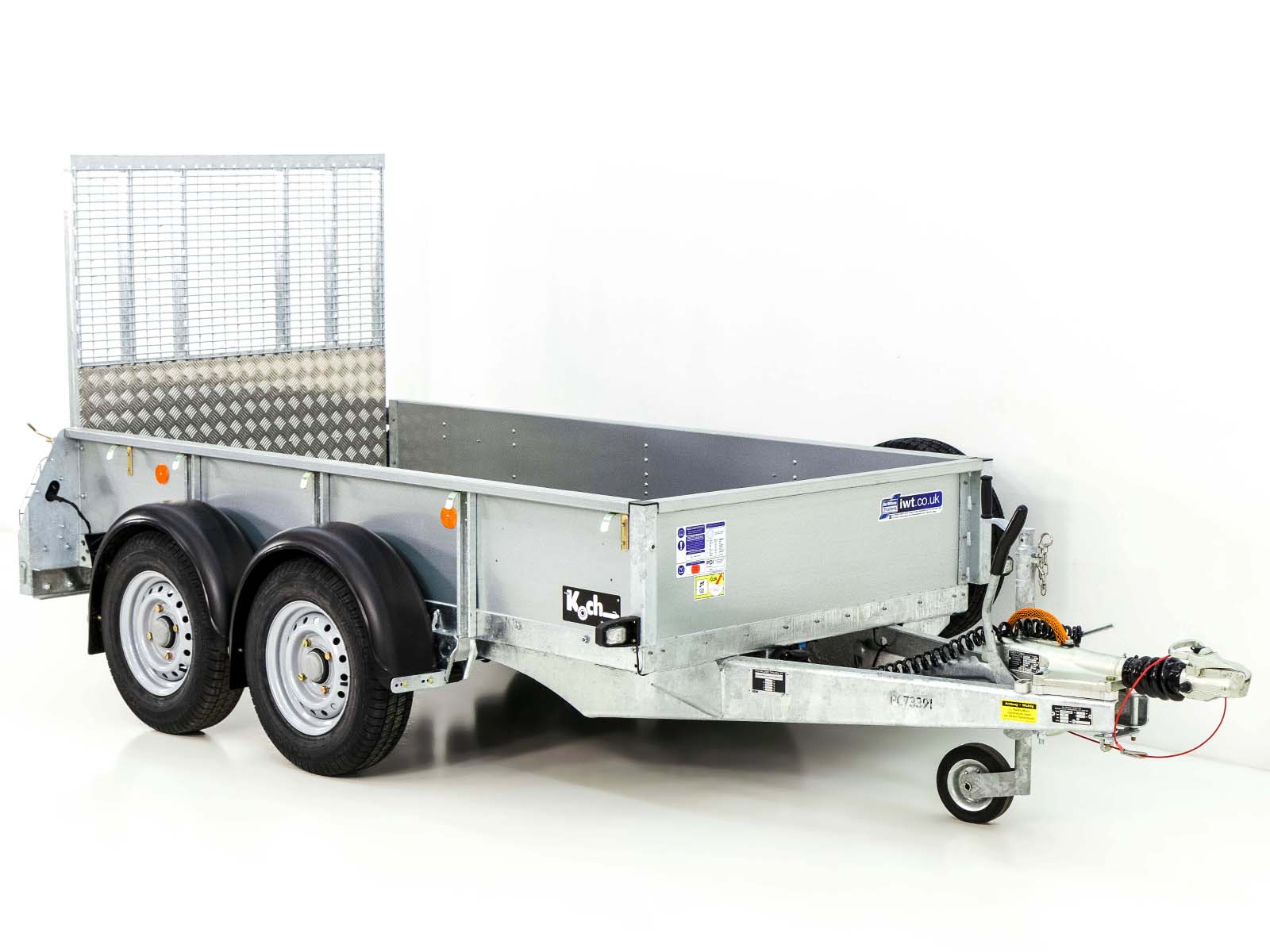 Der Ifor Williams Baumaschinenanhänger GD 84 ist ein leichter Anhänger mit durchgehender Rampe, ideal für den Transport kleinerer Maschinen. Der Anhänger ist mit einer stabilen Stahlrahmenkonstruktion ausgestattet und hat eine Feuerverzinkung für Langlebigkeit. Der Anhänger ist mit einer Auflaufbremse und einem Stützrad für zusätzliche Stabilität ausgestattet.