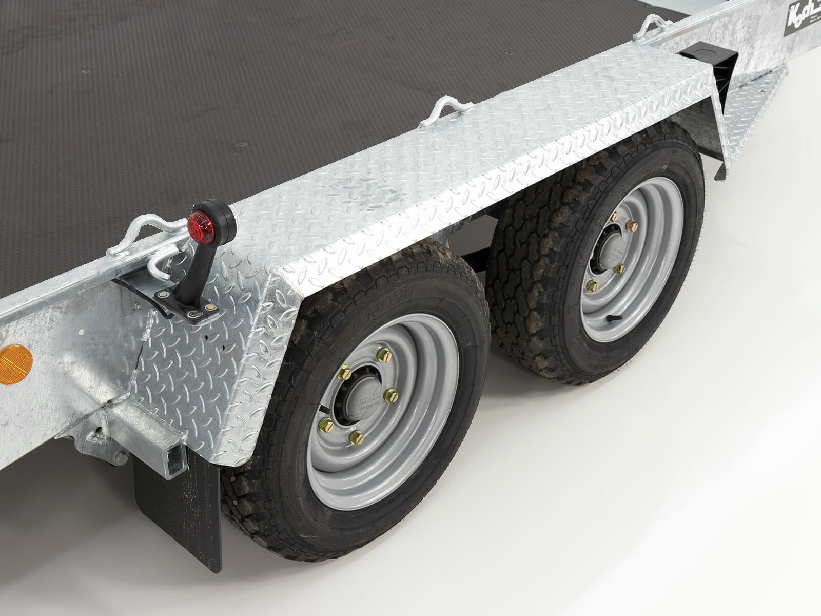 Der „Ifor Williams Baumaschinenanhänger GH106 184x305cm 3,5t“ bietet eine exzellente Kombination aus robustem Design und hoher Nutzlast. Mit einer Ladekapazität von 2800 kg und einem zulässigen Gesamtgewicht von 3500 kg ist dieser Anhänger perfekt für den Transport von Baumaschinen. Die Einzelrampen aus Stahl sind verschiebbar und sorgen für eine einfache Handhabung.