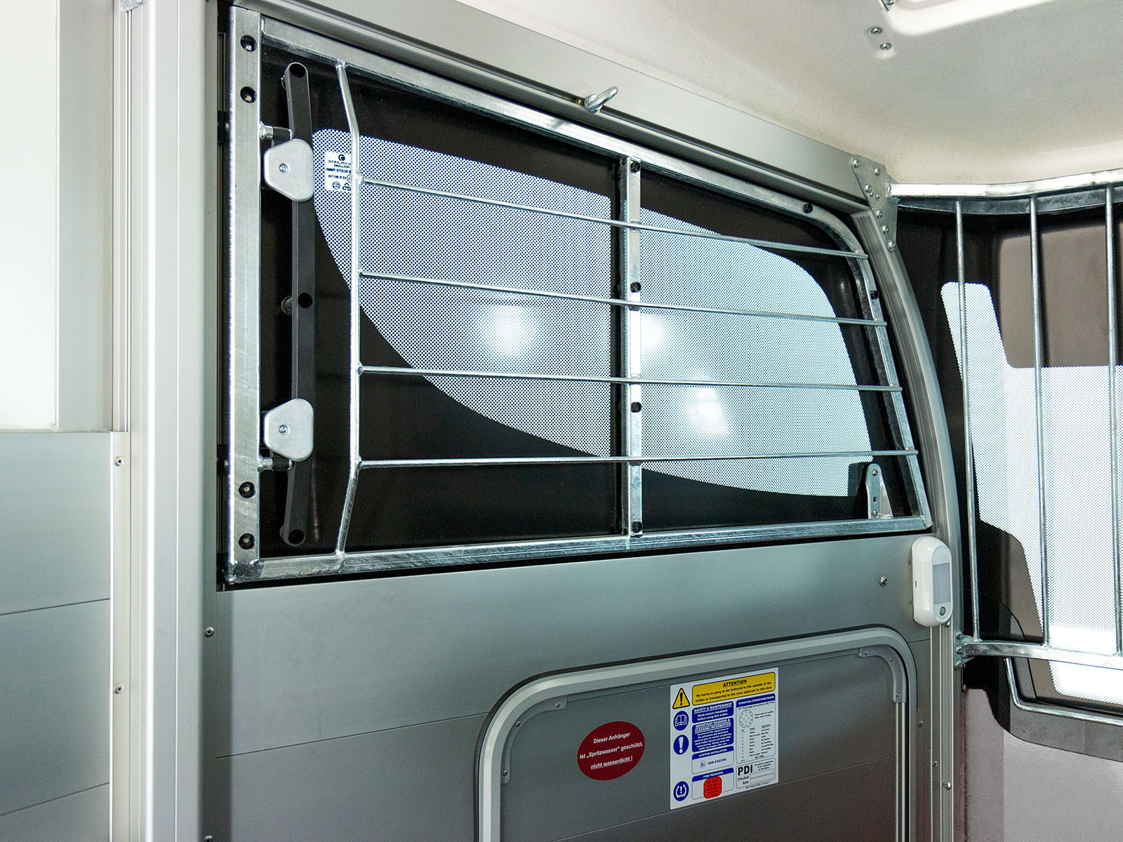 - Das obere Teil der Fronttür lässt sich wie eine Box öffnen, um dem Pferd Sicht auf die Umgebung zu ermöglichen