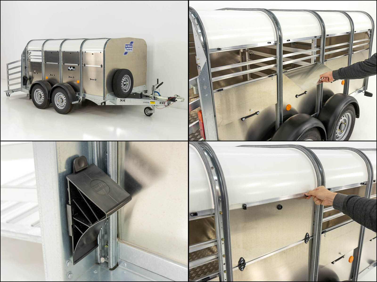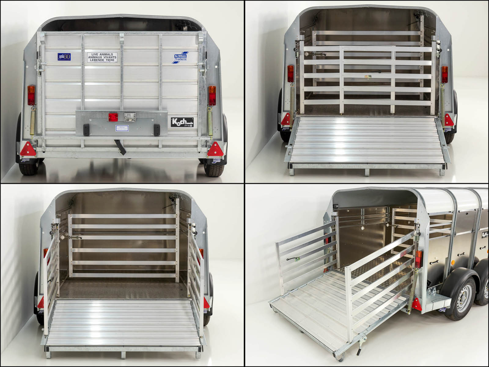 Der Ifor Williams TA5 156×250 ist ein etwas kürzerer Viehtransporter mit Laderaumlängen von 241 cm, ideal für den Transport von kleineren Tieren oder weniger Ladung. Der Hänger verfügt ebenfalls über Aluminium-Seitenwände und ein hitzereflektierendes Dach, um eine angenehme Temperatur während des Transports zu gewährleisten. Die Heckrampe mit Aluminiumbelag und eine Feder sorgen für einen sanften Einstieg der Tiere.