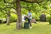 Mit 2 18-Volt-Akkus und einem starken, bürstenlosen 36-Volt-Motor ist der LMO 5-18 Dual Battery Set auch auf großen Rasenflächen mit bis zu 550 Quadratmetern zu Hause. Leicht und wendig lässt sich der Akku-Rasenmäher mühelos über unebenes Gelände und um Hindernisse herum führen. Die Arbeitsbreite beträgt 41 Zentimeter, die Schnitthöhe lässt sich in 6 Stufen von 25 bis 70 Millimeter anpassen. Beim Mähen passt die intelligente Motorsteuerung iPower die Drehzahl automatisch an die Grasbedingungen an. An Rändern oder Kanten richten Rasenkämme die Grashalme auf, die dadurch optimal erfasst werden. Das 2-in-1-Mähsystem ermöglicht es, den Grasschnitt während des Mulchens als natürlichen Dünger gleichmäßig auf dem Rasen zu verteilen oder im 45 Liter großen Grasfangbehälter zu sammeln – für langes Mähen ohne Zwischenstopp. Der Führungsholm ist für eine angenehme und ergonomische Arbeitshaltung teleskopierbar. Das klappbare Gestänge macht die Aufbewahrung sehr platzsparend. Für den einfachen Transport über Treppen und Absätze sorgt ein großer, stabiler Tragegriff. Akkus und Schnellladegerät sind im Set enthalten.