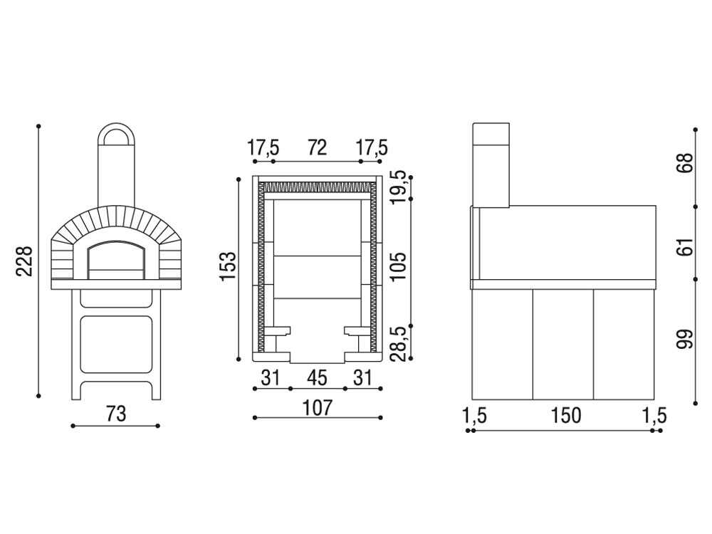 Entdecken Sie Eigenschaften des Outdoor-Holzbackofens Linea VZ Pozzuoli.