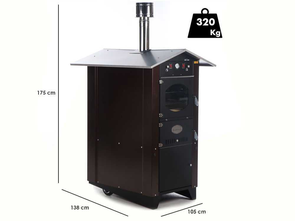 Das äußere Gehäuse besteht aus hochwertigem Edelstahl, was eine hohe Verschleißfestigkeit und Zuverlässigkeit bietet. Mit den Maßen 45 x 59 x 37 cm lässt sich der Ofen problemlos in verschiedene Umgebungen integrieren. Der Innenraum misst 35 x 40 x 17 cm und erlaubt das Backen von Pizzen in unterschiedlichen Größen.