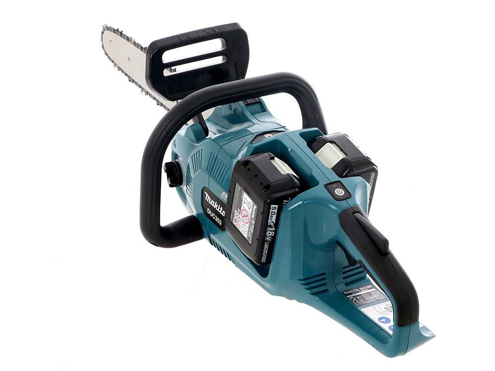 Die Elektro Kettensäge Makita DUC353Z mit Batterie verfügt über zwei leistungsfähige Batterien 18 V und wird vom Elektromotor Makita betrieben.