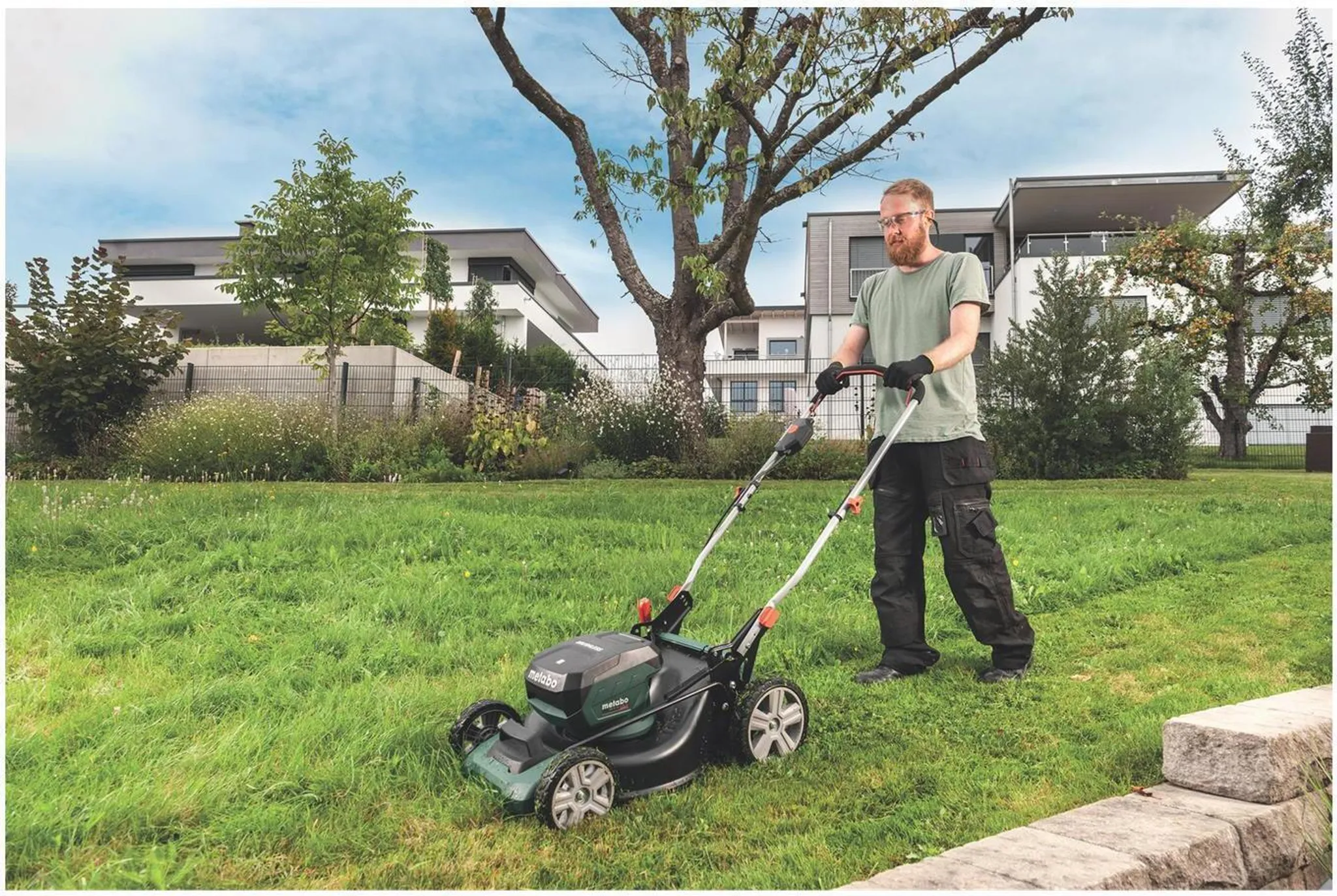 - Bürstenloser Motor, 7-stufige Schnitthöhenverstellung, automatische Anpassung der Motorleistung an die Grashöhe, Leichtlaufräder, höhenverstellbarer Schiebebügel, gummierter Griffbereich, doppelter Schutz gegen ungewolltes Starten, klappbarer Bügel, Tragegriffe, Akku-Ladestandanzeige, Metallabdeckung, Sichelmesser, umweltfreundlich und leise durch Akkubetrieb, 100% kompatibel zur 18-Volt-Klasse (36-Volt-Betrieb mit zwei 18-Volt-Akkupacks von Metabo). Mähen, Sammeln und Mulchen möglich.