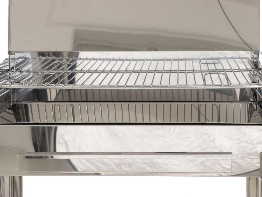 Dieser Kohlegrill Mille Achille ist vollständig aus Edelstahl mit Grillrost aus verchromtem Stahl. Ideal für draußen. Der Grill verfügt über eine herausziehbare Aschenwanne und ein praktisches Ablagefach auf der Unterseite.