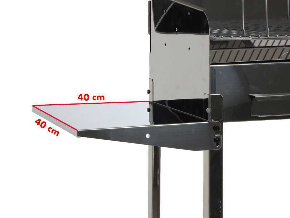 Dieser Kohlegrill Achille ist vollständig aus Edelstahl mit Grillrost aus verchromtem Stahl. Ideal für draußen. Der Grill verfügt über eine herausziehbare Aschenwanne und ein praktisches Ablagefach auf der Unterseite.